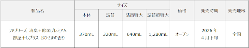 P&Gジャパン合同会社(本社:神戸市)は、エアケアブランド『ファブリーズ』から、部屋干し時の生乾き臭対策に着目した布用消臭スプレー「ファブリーズ 消臭+除菌プレミアム 部屋干しプラス おひさまの香り」を、2026年4月下旬より全国で発売いたします。